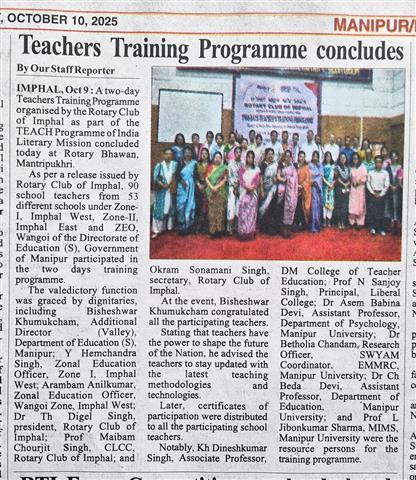 Rotary Club of Imphal organised a two days ‘Teachers Training Progr. . .